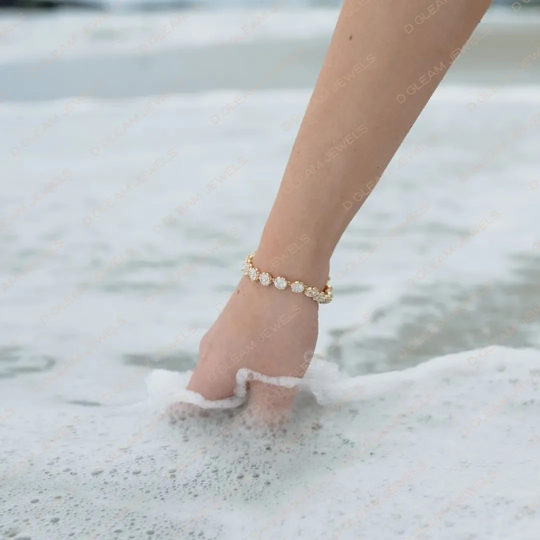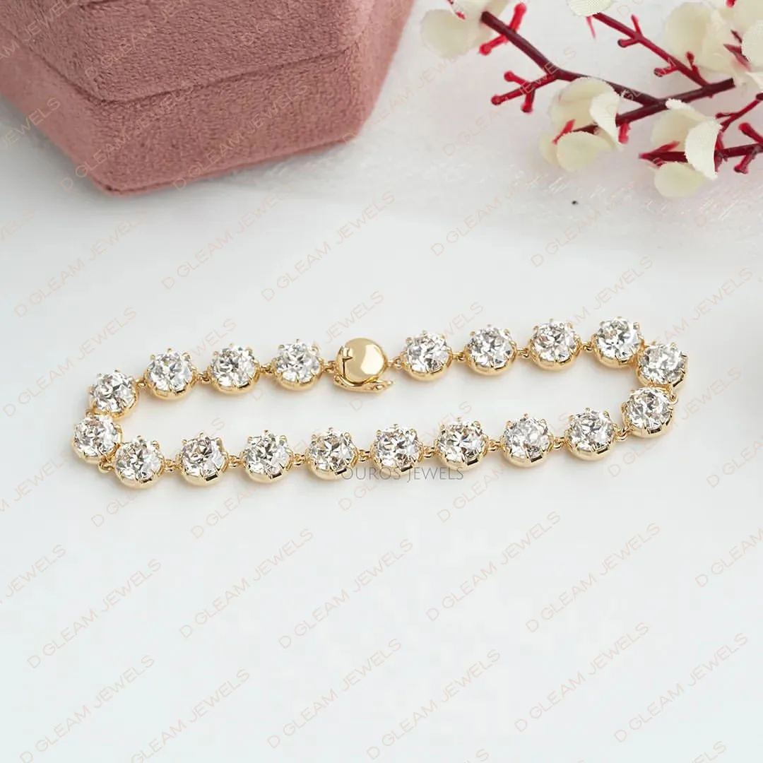 Sterling Yellow Gold Moissanite Tennis Bracelet VVS Cut Diamond Classic Design Fine Chain Link 19 Stones 9.50ct Perfect Party